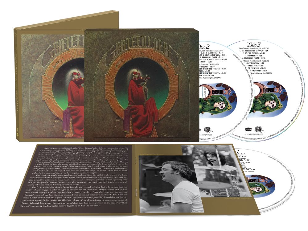 A ‘Blues For Allah (50th Anniversary Deluxe Edition)’ az eredeti éemezanyagon felül további közel kétórányi élő-felvételt rejt: az 1975. augusztus 12-i, Great American Music Hallban tartott hangbeállást – beleértve az album „Sage & Spirit”, „Help On The Way”, „Slipknot!” és a „Franklin’s Tower” című számait, valamint a ‘the Blues For Allah Suite’ nevű jótékonysági koncertet a Kezar Stadionból, sőt további dalokat a kiadványhoz kapcsolódó első turnéállomásról – például a „Eyes Of The World” című közönségkedvencet.