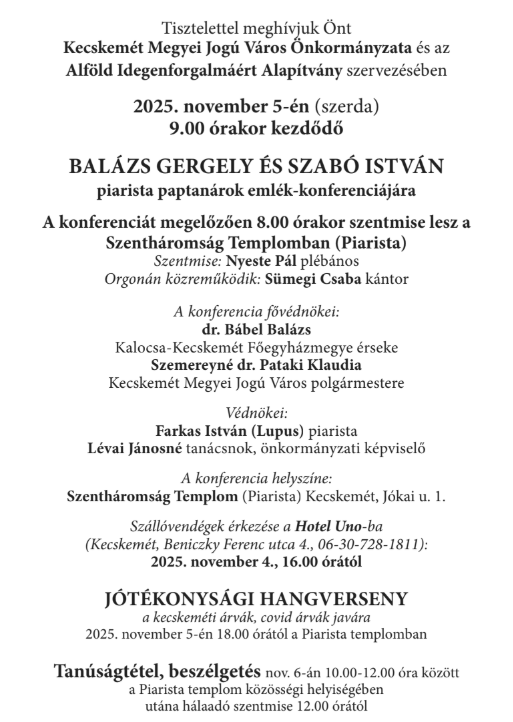 Kezdőlap Események November 5-i emlék-konferencia meghívója. EseményekHírekKecskemétKiemelt November 5-i emlék-konferencia meghívója. 2025. október 6., hétfő Facebook Twitter Google+ Pinterest WhatsApp Szeretettel várjuk Önöket!