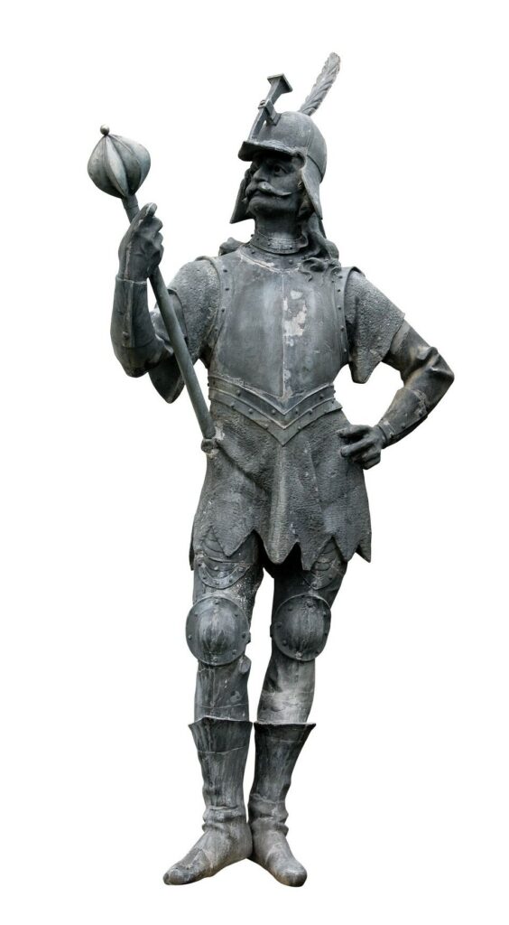 „Árpádka” cinköntvény szobra a restaurálás után, 2021 januárjában (fotó: Dömötör János)