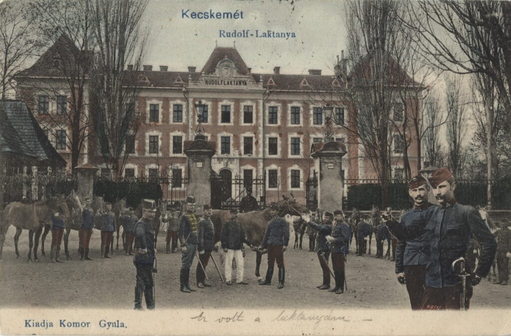 A Rudolf lovassági laktanya egy 1909-ben feladott képes levelezőlapon (Kecskeméti Katona József Múzeum)