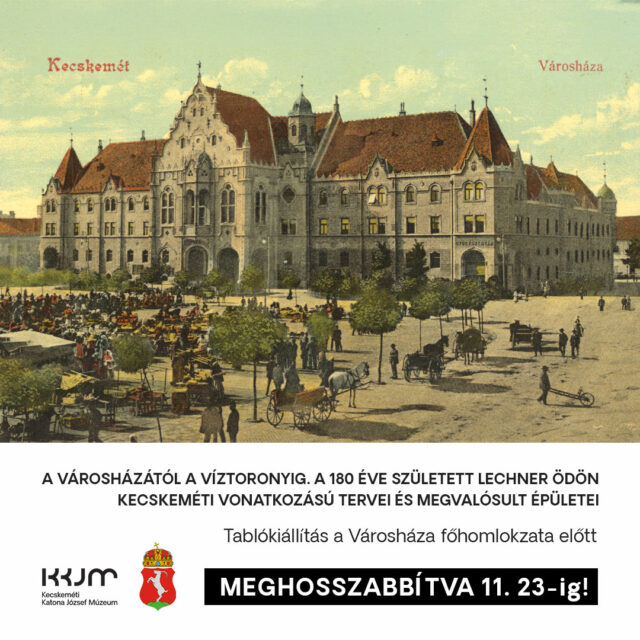 Kecskeméten már életében – az 1907. április 30-i kecskeméti közgyűlésen – utcát neveztek el Lechner Ödönről (1845–1914), stílusosan közvetlenül a Városháza mögött. A magyar századfordulós-szecessziós építészet stílusteremtő nagymestere ugyanis majd egész pályafutása alatt, mintegy négy évtizeden át kötődött a városhoz és annak jeles irányítóihoz, az utóbbiak közül is mindenekelőtt Kada Elekhez. A főtéri tablókiállításon minden Kecskeméthez kötődő műve bemutatásra kerül (röviden) a város pesti házától, a Rudolf lovassági laktanyán át a Városházáig, egészen a kecskeméti elmekórházhoz és a víztoronyhoz készített tervekig. A számtalan képi illusztráció és a részletes művészettörténeti szöveg szó szerint tartalmas időtöltést kínál, így érdemes több alkalomra felosztani a megtekintését.