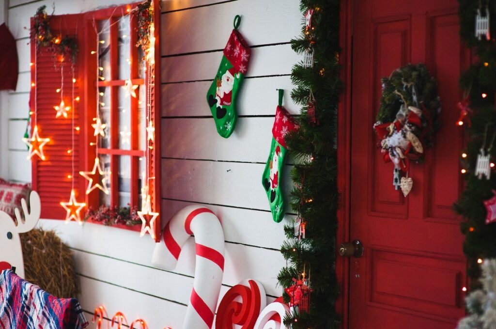 Az egyedi ajtókopogtatók, cukorpálcák, gömbök és hatalmas masnik látványosan keretezik a bejáratot. Újdonságként megjelennek a karácsonyi ajtónálló dekorok is – többek között kedves manók vagy rénszarvasok formájában. A vendégváró dekoráció slágere pedig a bohókás óriáscsésze, amit különböző karácsonyi díszekkel, figurákkal, apró fényekkel dekorálhatunk. Sok más mellett akár ezt is elkészíthetjük házilag. A gyors megoldások híveinek ugyanakkor kapóra jöhetnek a készen kapható, felfújható karácsonyi gömbök és figurák, amelyekkel percek alatt feldobható az előtér.