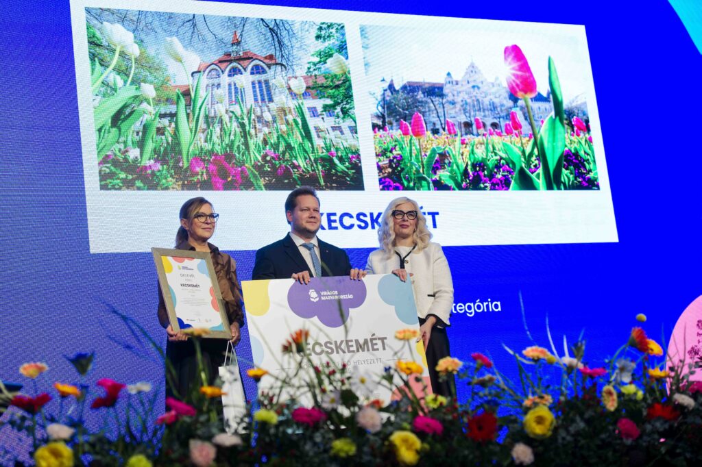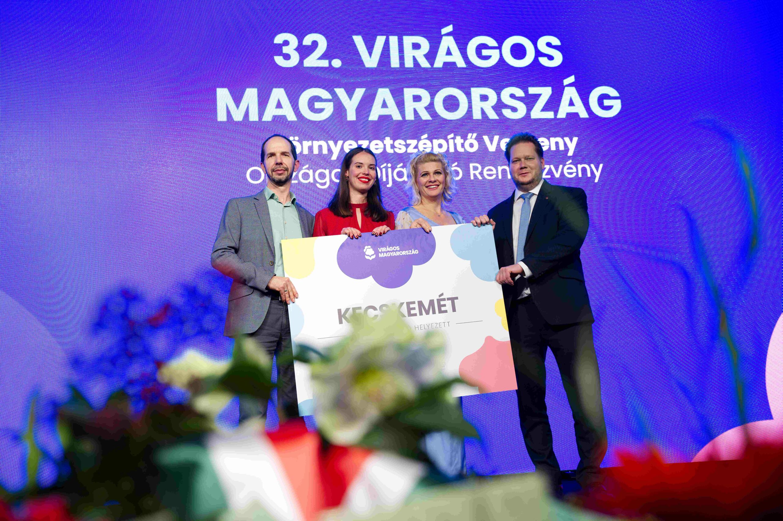 Budapest, 2025. november 21. – Pénteken kihirdették a 32. Virágos Magyarország környezetszépítő verseny eredményeit, amelyen Kecskemét a klasszikus „Város – 30 000 fő felett” kategória legmagasabb szakmai elismerését, a „Legvirágosabb város” fődíját kapta meg. A kitüntetést dr. Fekete Gábor alpolgármester vette át a Bálna Honvédelmi Központban rendezett ünnepi díjátadón. A várost képviselte továbbá Győri András főkertész és Erdélyi Regina, a zöldinfrastruktúra-fejlesztés ügyintézője is.